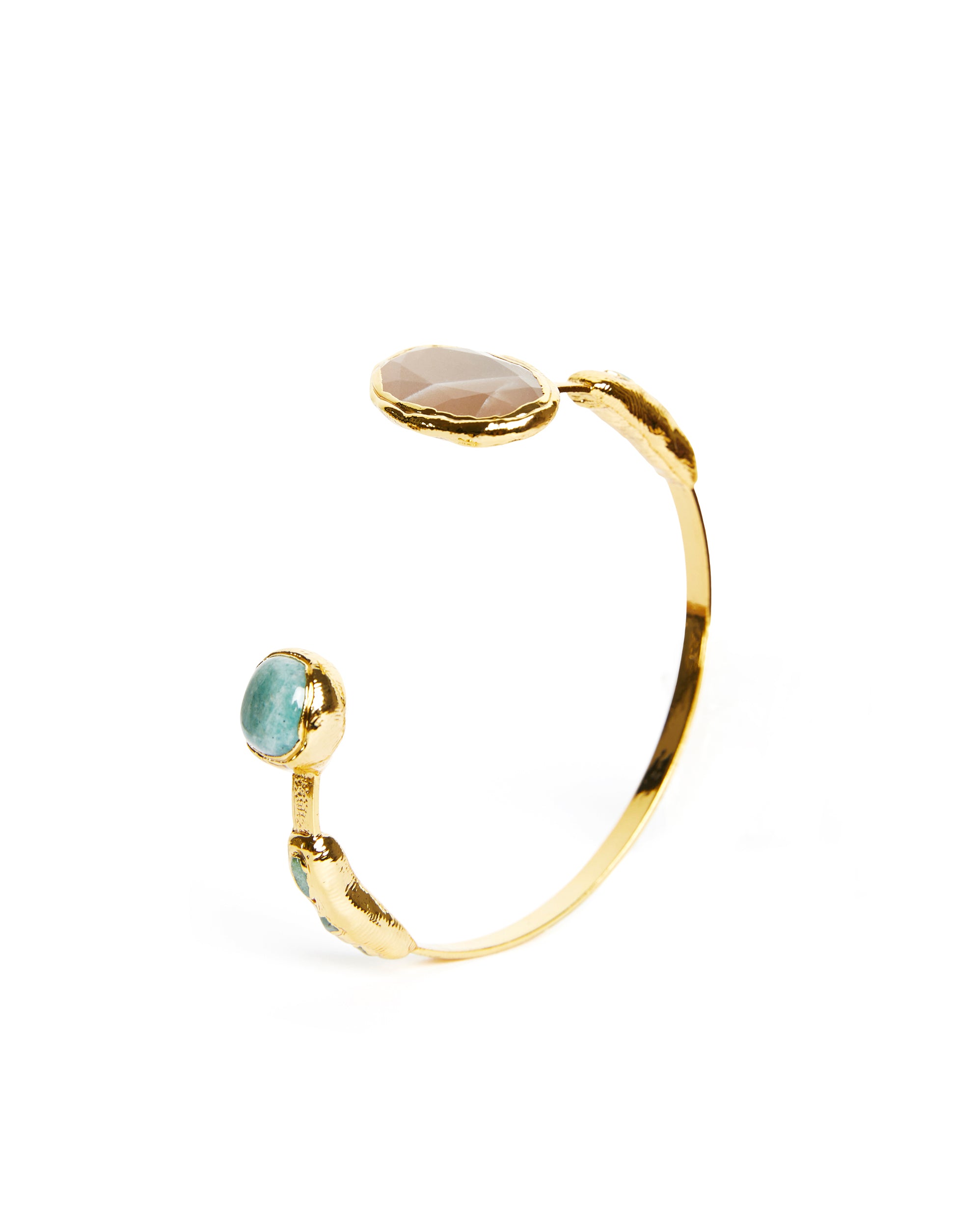 Moss, handcrafted 18k gold plated bracelet with natural gemstones.