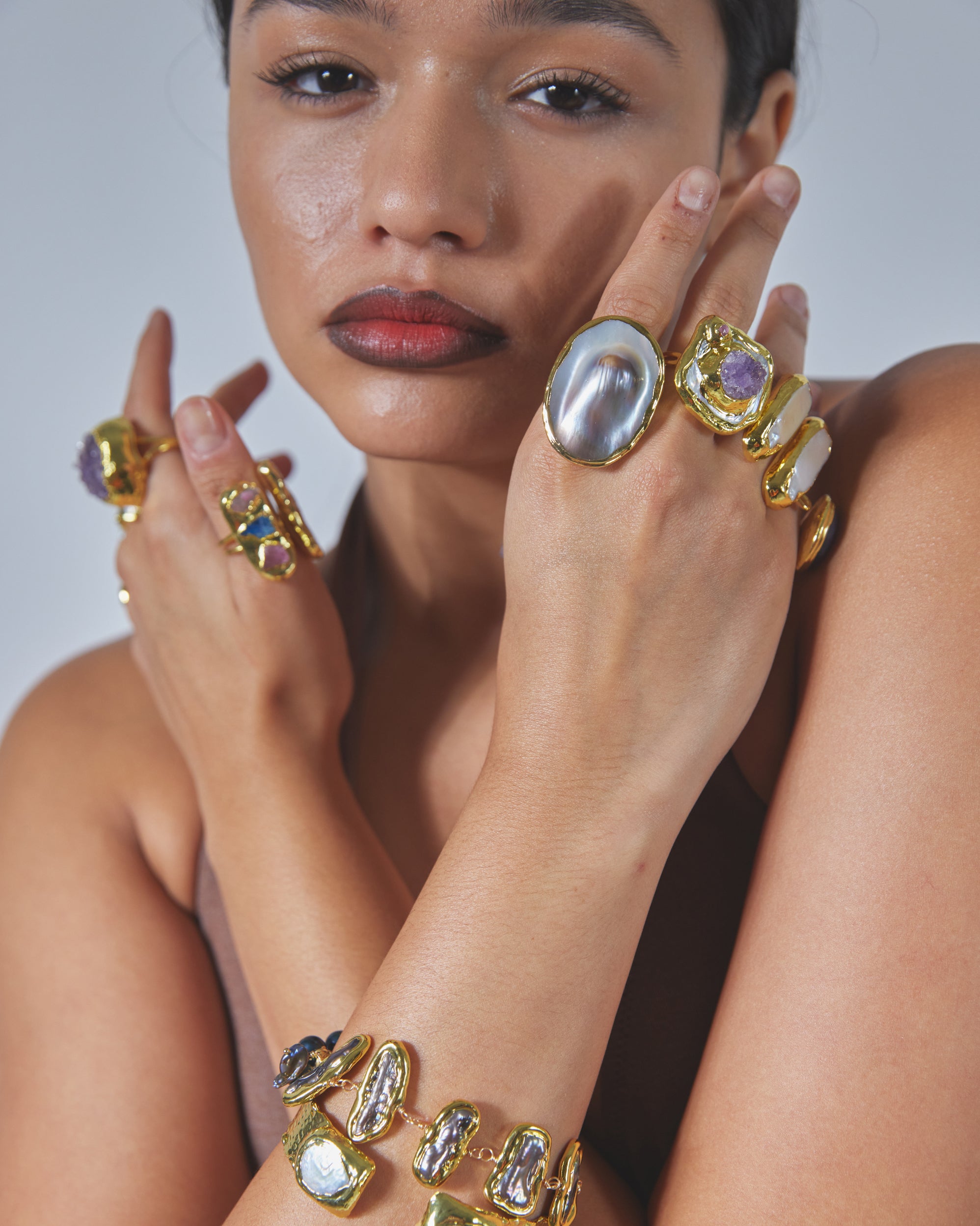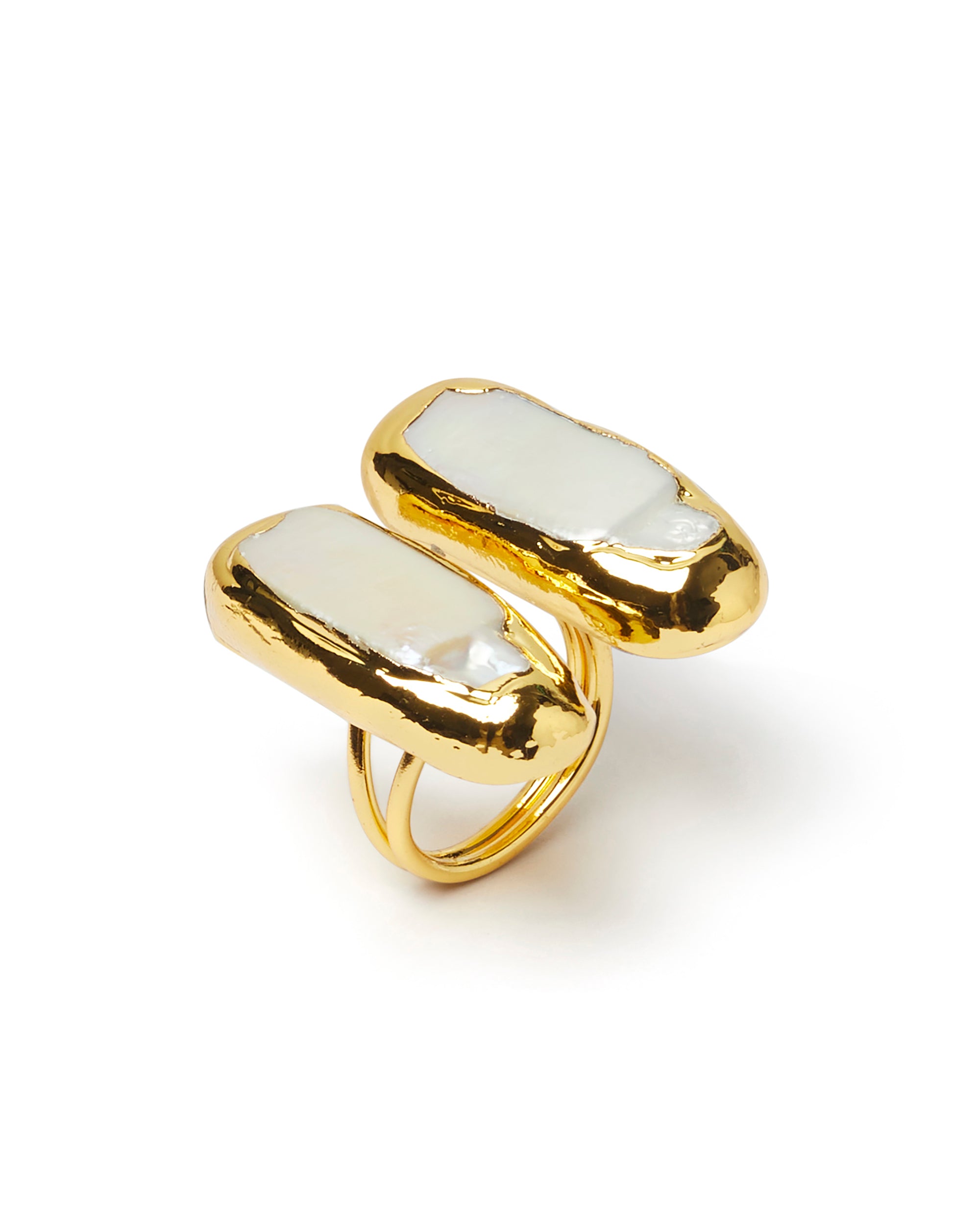 Boats, handcrafted 18K gold plated natural pearls ring.