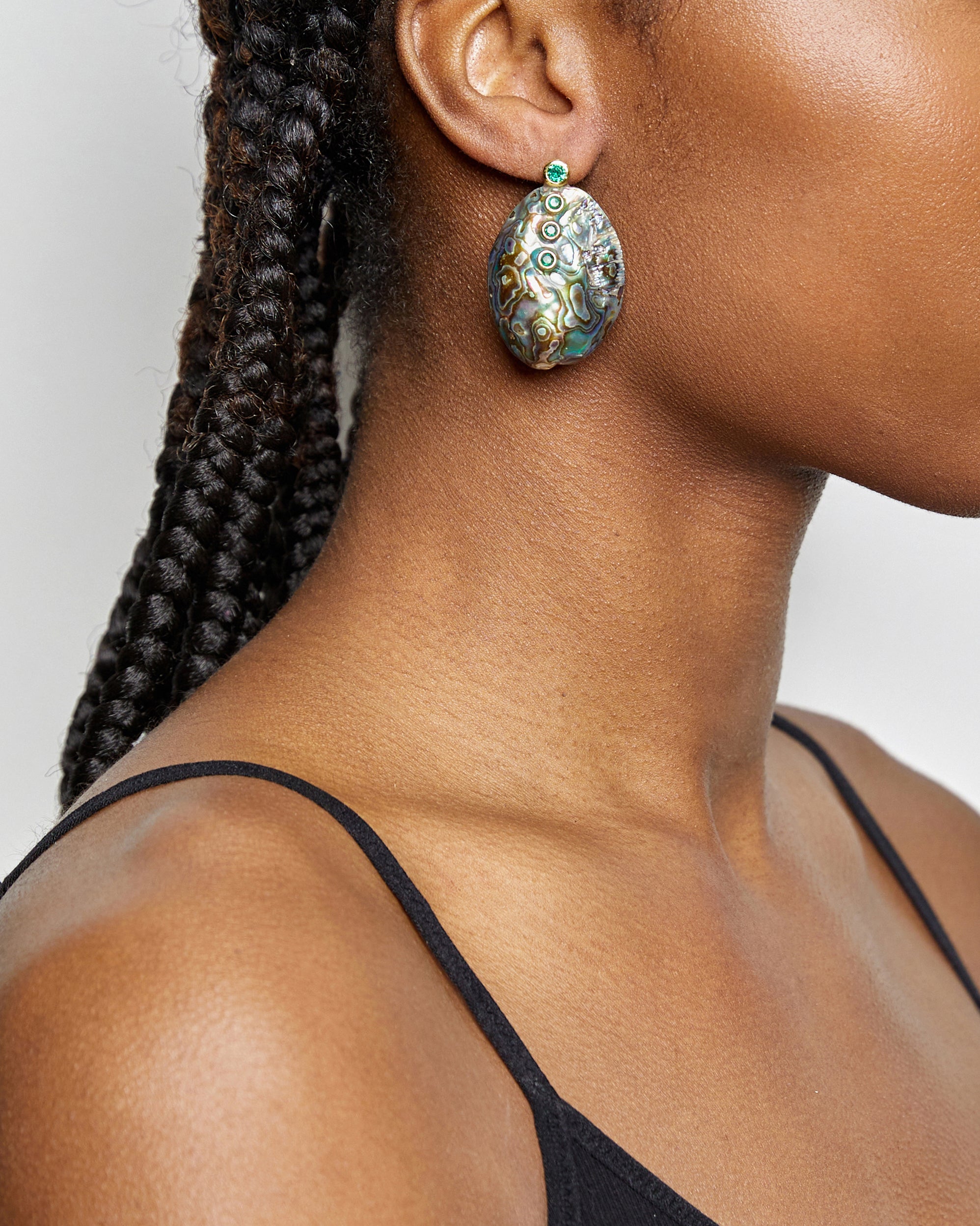 Tear drop of ocean, handcrafted natural abalone shell earring with green Cz.