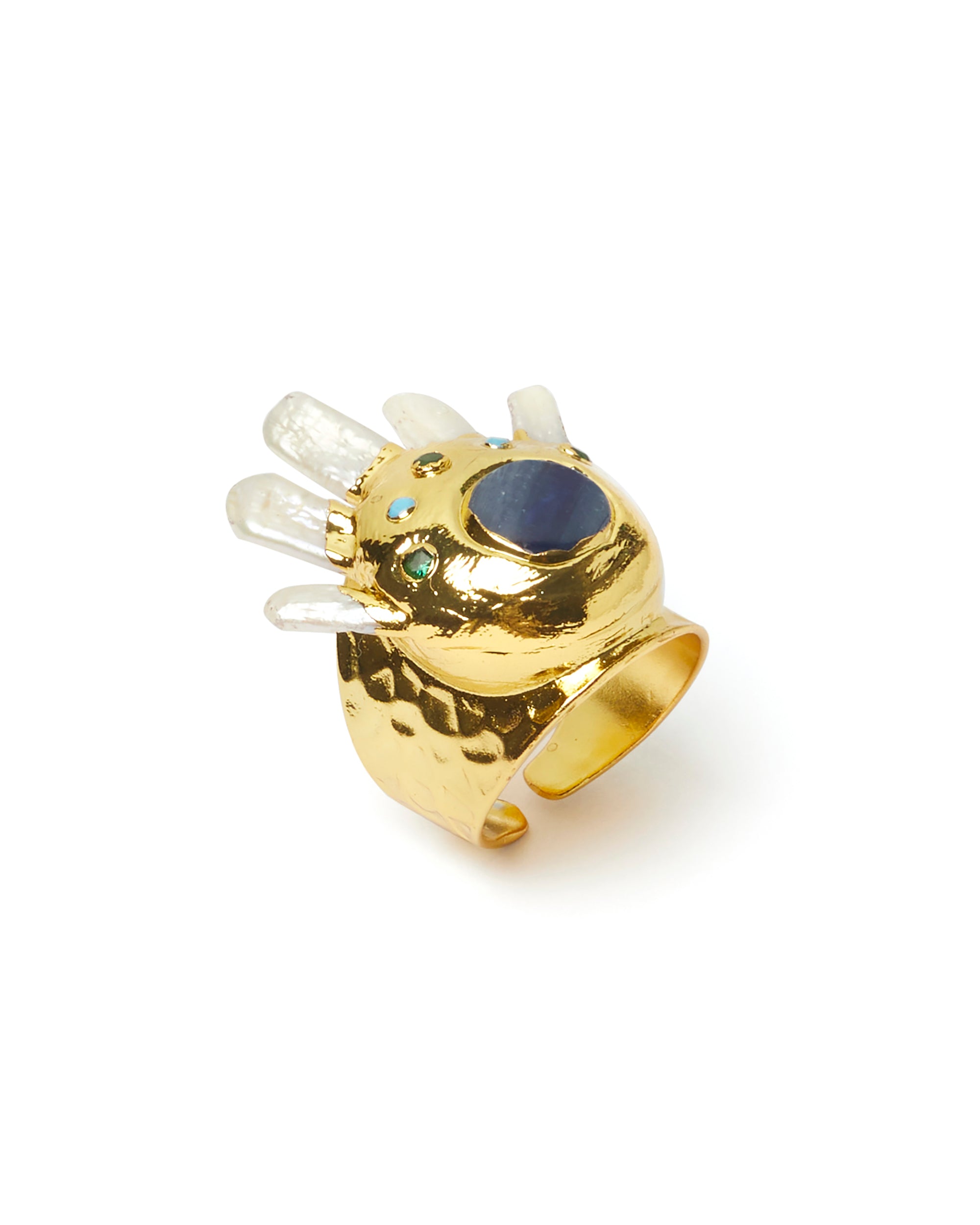 Infinity stones, handcrafted natural pearls and gemstones ring, 18K gold plated.