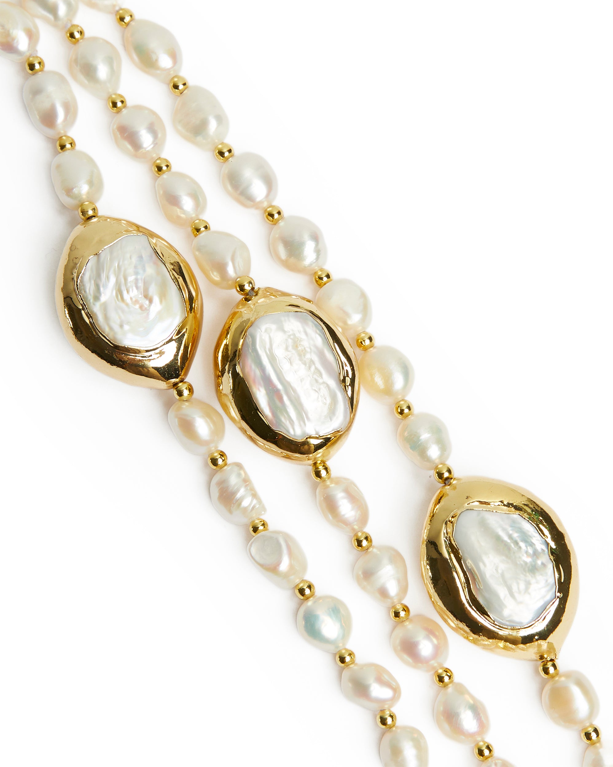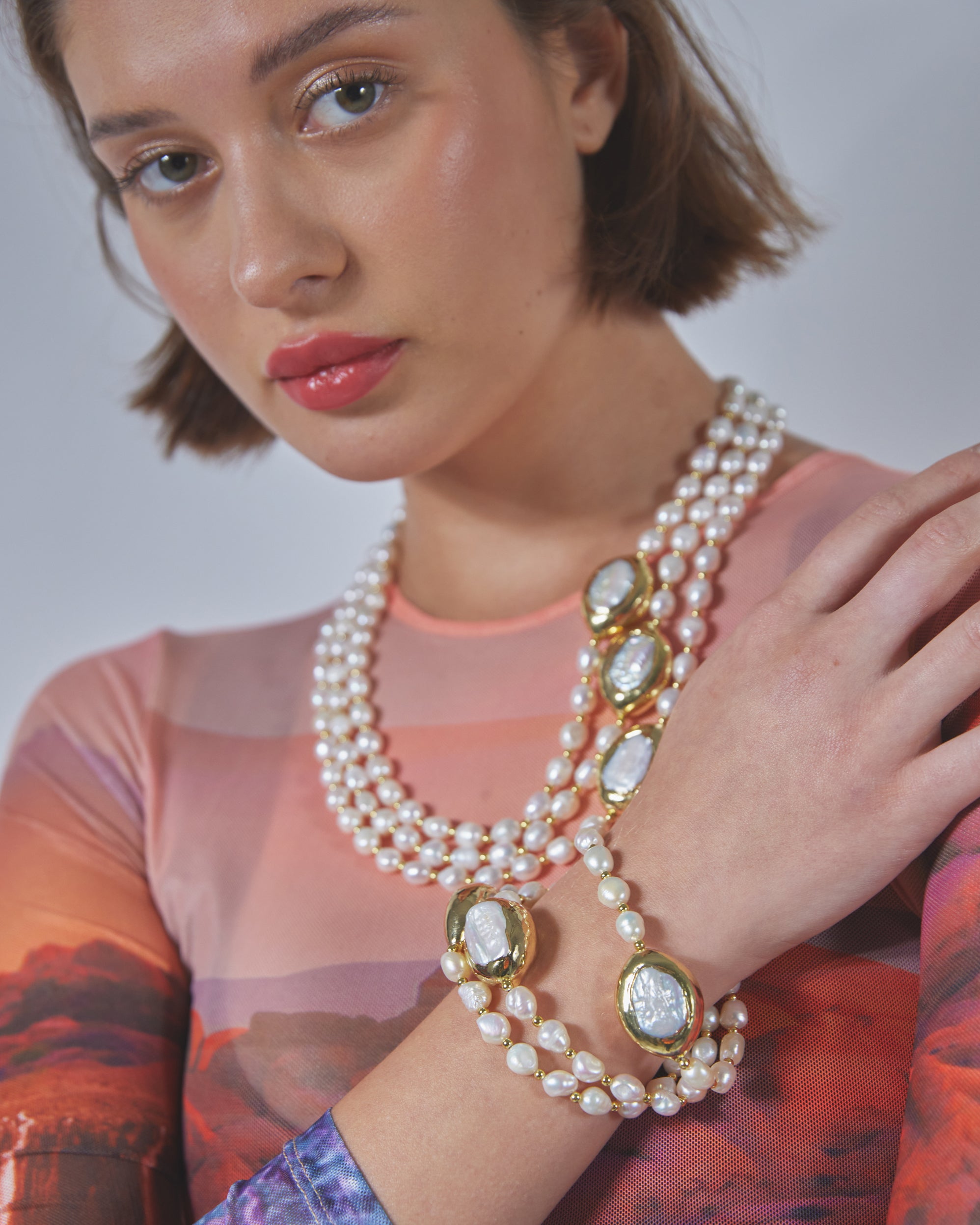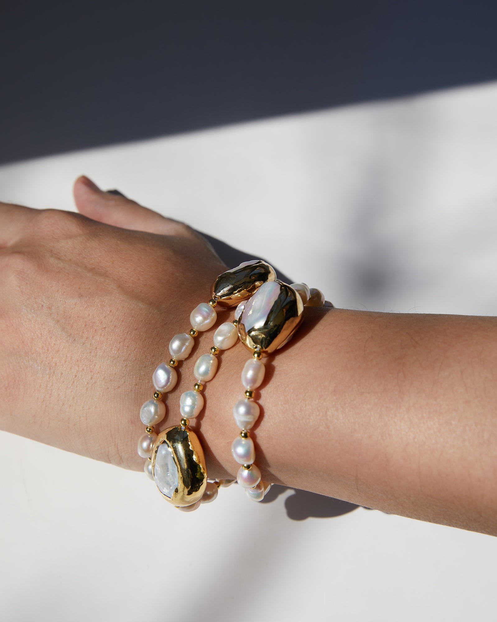 Stream bracelet, handcrafted 18k gold plated natural pearls bracelet.